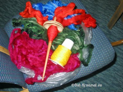 Die Portion Gelb ist fertig "versponnen", die Orange auch schon fast... es fehlen also nur noch 3 Farben, dann kann ich mit dem Projekt los legen.