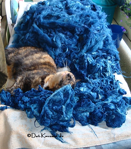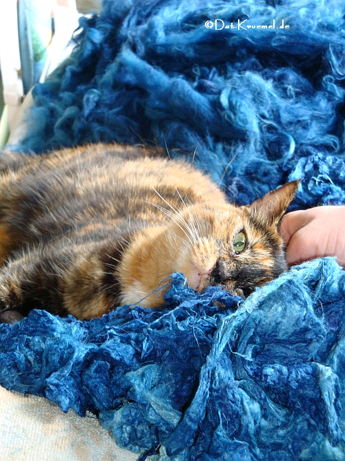 Sie tut es eigentlich nicht mehr, weder Spinn- noch Knäuel-Wolle schleppt sie durch die Gegend, wenn sie mal wieder meint "Frauchen ist gemein und guckt nur nach dem Wollzeug!"...