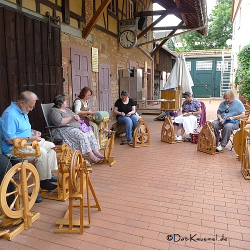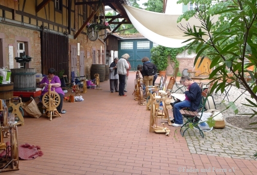Waltraud hatte ihren Spinnkasten von H. Leichtlen mitgebracht und Interessierten vorgeführt.