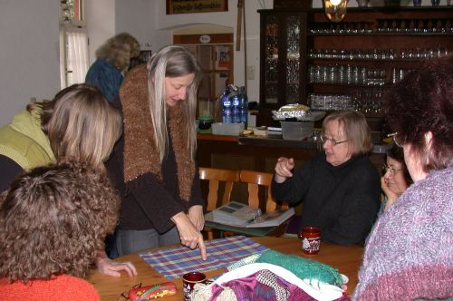 Und mit wem haben wir den Kurs gemacht? Na klar, mit ihr, Gabriele Breuer. Warum in die Ferne schweifen, wenn das Gute liegt so nah. Wir können wohl noch ewig so weiter machen, wir lernen bei ihr immer wieder was Neues dazu, wurscht ob übers Spinnen, Färben oder Weben oder sonstiges.