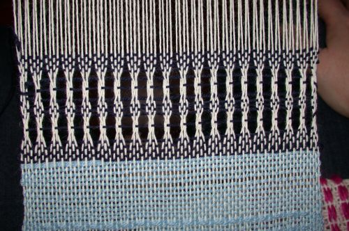 Diesmal nicht zum Thema Effektgarn spinnen, sondern zum Thema Weben, Muster weben.