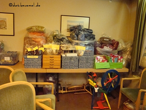 Der Raum war an beiden Tagen gut gefüllt mit allem.... Wolle in jeder Farbe und Zusammensetzung,