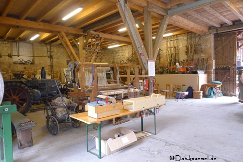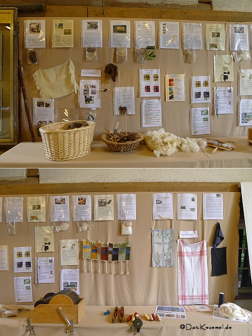 Heidelore hat in dieser Scheune einges rund um das textile Thema aufgebaut, u.a. diese Themenwand, die das ganze Jahr anlässlich der Sonderausstellung "Textiles" zu besichtigen ist.