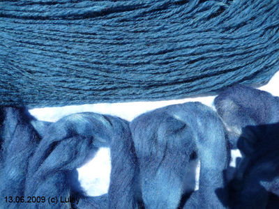ihren Pulli und ihr BW-Garn (ohne vorheriges Einweichen!) in den Topf geworfen. Allerdings war fast klar, dass da nicht mehr viel Indigo drin sein würde.... aber ich hatte da noch so eine Idee! Dazu später mehr.