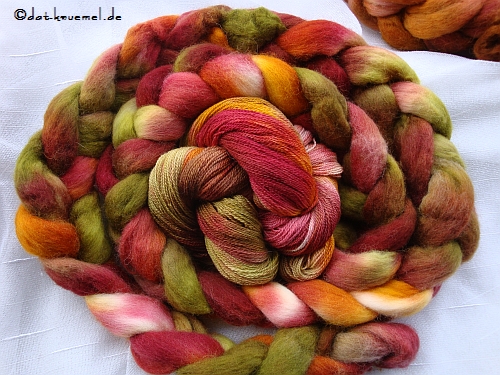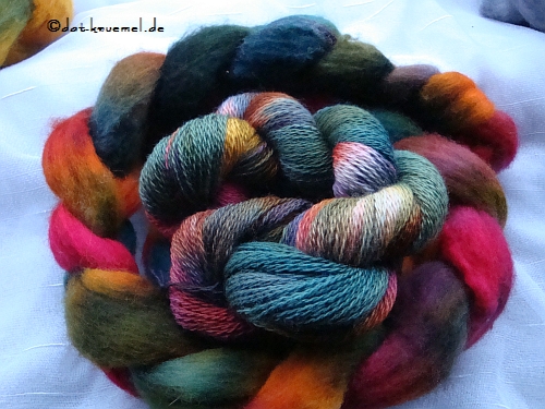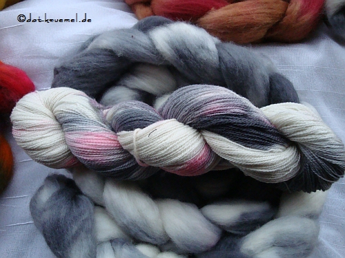 Dann ging mir das Weben ja auch nicht aus dem Sinn und dabei kamen dann einge Kombis, Spinn- und Socken- bzw. Lacewole, die ich gleichzeitig färben wollte.