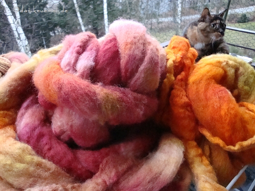 Und sie darf auch nicht fehlen, sie lag schon wieder auf der Lauer.... Wollte sie wohl in dem Wollbett dösen?