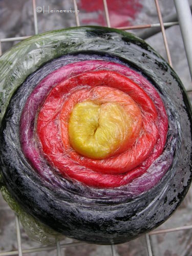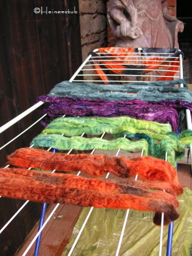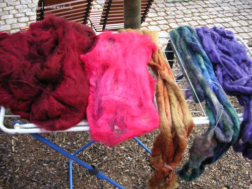Aber ca. 250 Gramm Wolle mischen braucht Zeit. Puh, da sind wir ganz schön ins schwitzen geraten. Das Ergebnis könnt ihr euch