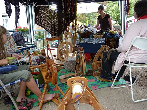 Wir waren an beiden Tage mit 5-6 Personen am Stand und hatten zusammen viel Spaß, tolle Gespräch mit Besuchern, netten Interessierten und angehenden Spinnerinnen.