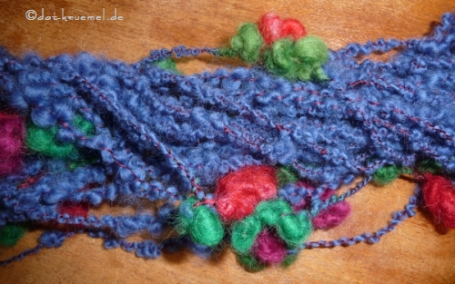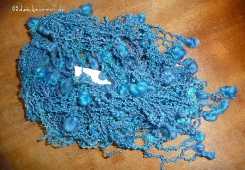 Danach hab ich mich dann noch an einer Merino-Kaschmir-Seide-Mischung versucht.... als Boucle-Garn für eine Kette.