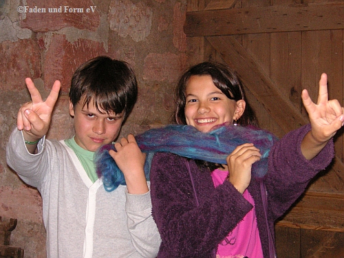 Hier ist unser Nachwuchs zu sehen, der sich auch schon mit dem Thema "Kardieren" beschäftigt.