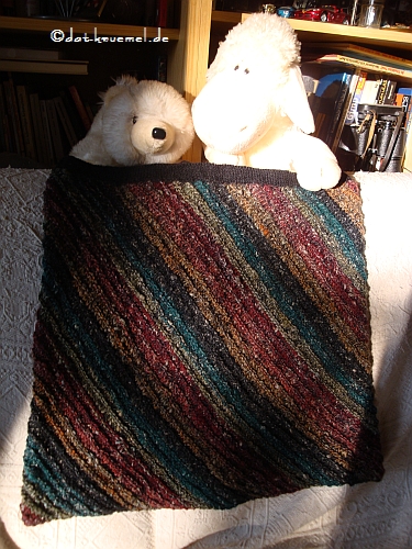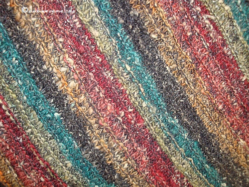 Achja, dieses Tuch hat nach dem Waschen und schleudern in der Wama noch einige Zeit im Trockner verbracht....mit Anfilz-Absicht. Ich war so wahnsinnig, die kompletten 30 Min. ab zu warten, statt zwischen durch zu kontrollieren. Aber es ist mal wieder gut gegangen und der Filzgrad ist so wie er ist absolut genial und richtig. Aber geschwitzt hab ich im Nachhinein schon etwas.