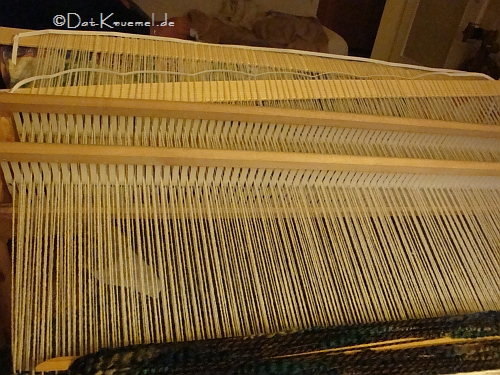 Kette wurde nicht auf dem Schärrahmen gemacht, sondern direkt (zum 2.Mal, klappte ganz gut).