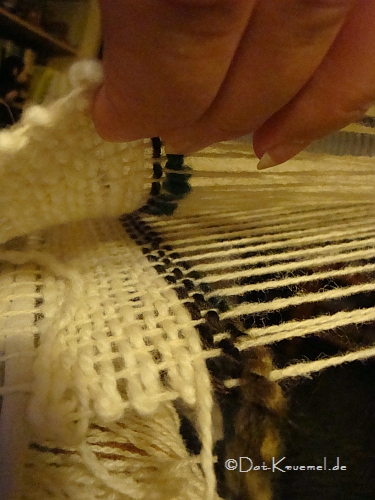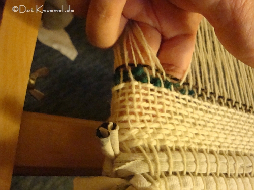Einzug ging schief, was mir aber gleich beim Anknoten auffiel...gerettet. (Merke: Doppelgewebe immer versetzt einziehen)