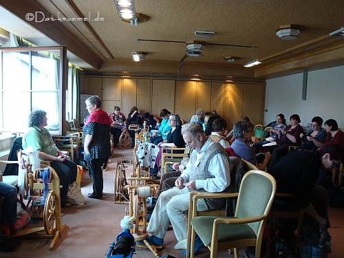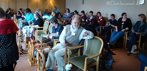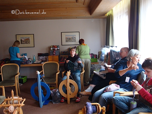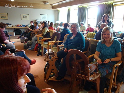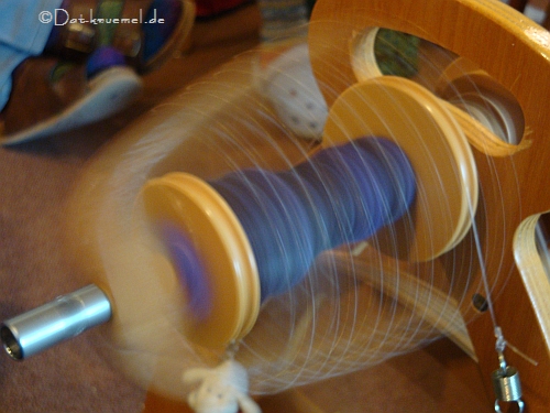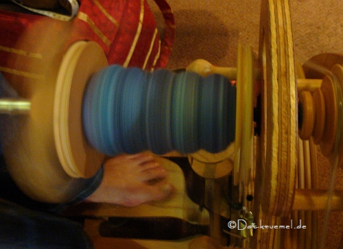 Und hier eine begeisterte Probe-Spinnerin am Schacht "Sidekick". Wir sind schon ganz gespannt, welche der Probespinnerin zuerst eines ihr eigen nennt.