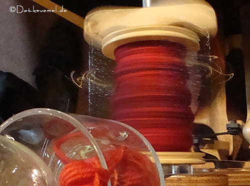 Kerstin hat mal "ebenso"  übern Tag verteilt dieses Effektgarn gesponnen, einschliesslich der hauchdünnen Seide.