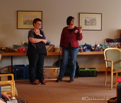 Zum krönenden Abschluß (mitten drin) bedankte Helga, unterstützt von Andrea, noch im Namen aller bei den beiden Organisatorinnen des Treffen.