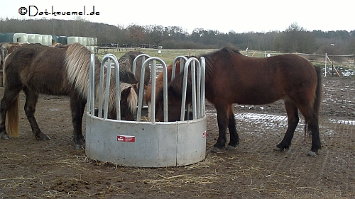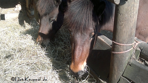Kurz vorm Hof verdeckt eine Baumreihe die Sicht auf den Hof. Und was passiert, wie wir dran vorbei waren? Meine Ohren bekamen was zu hören. Erst wieherte Fylgja und dann antwortete der Hof....erst die Stuten, dann die Wallache und am Ende konnten die Schulpferde auch ned ruhig sein. ![]()